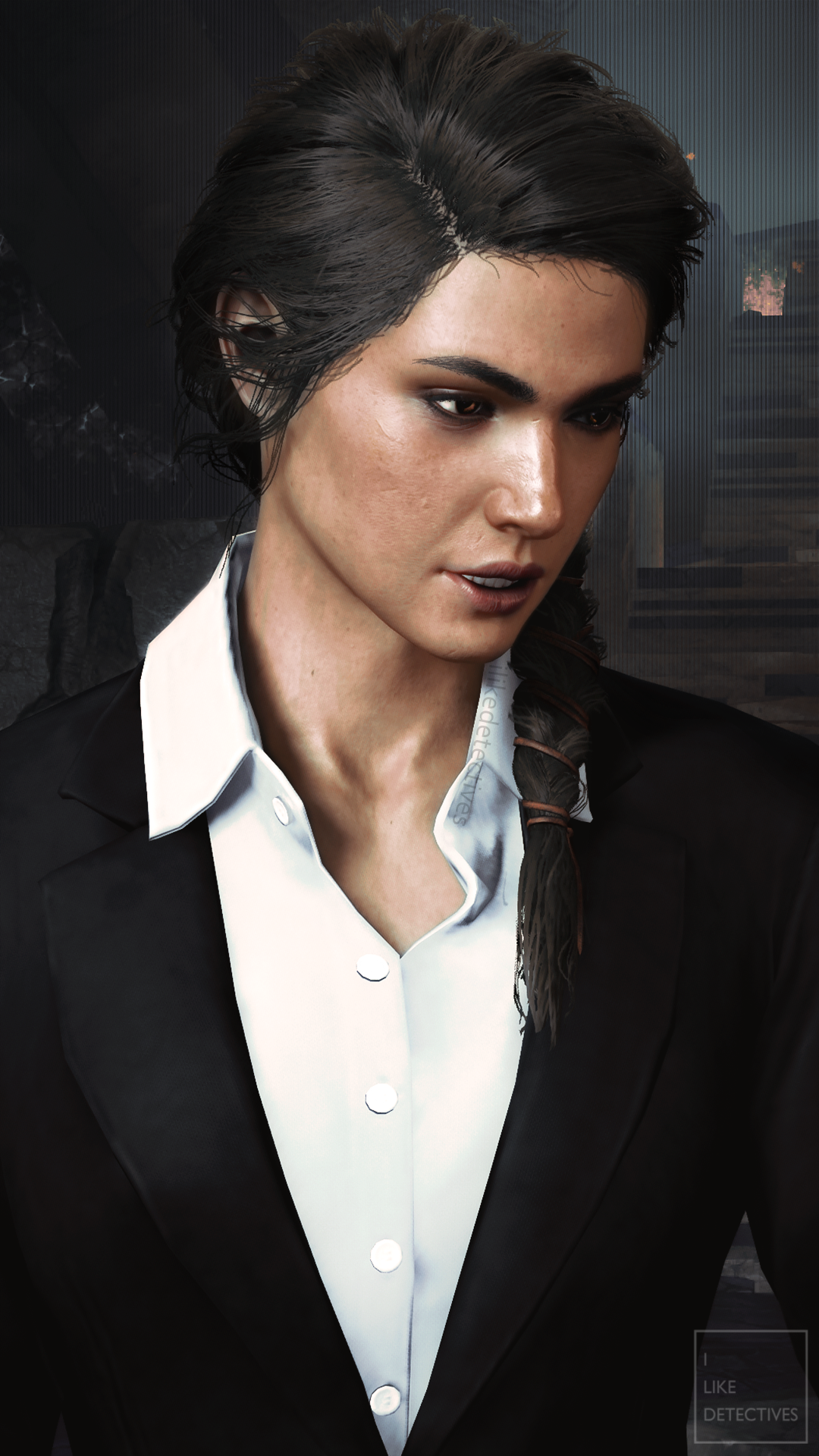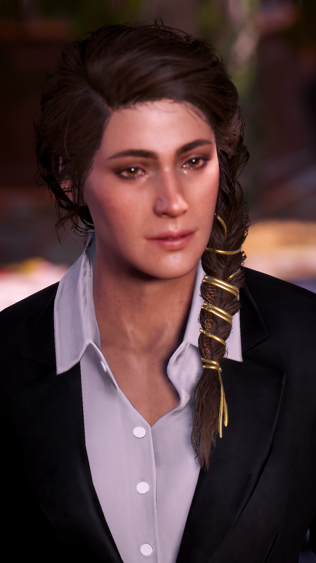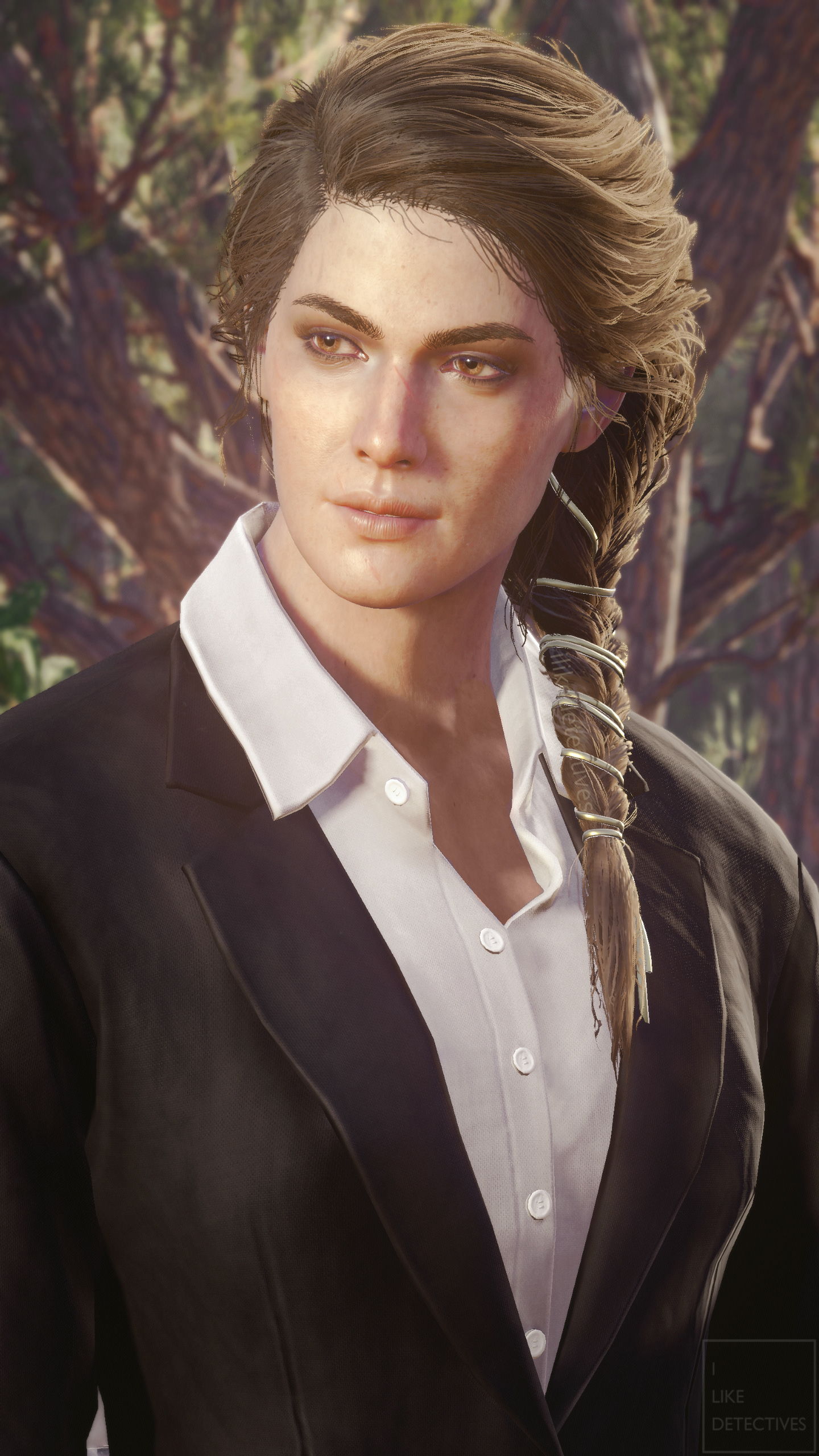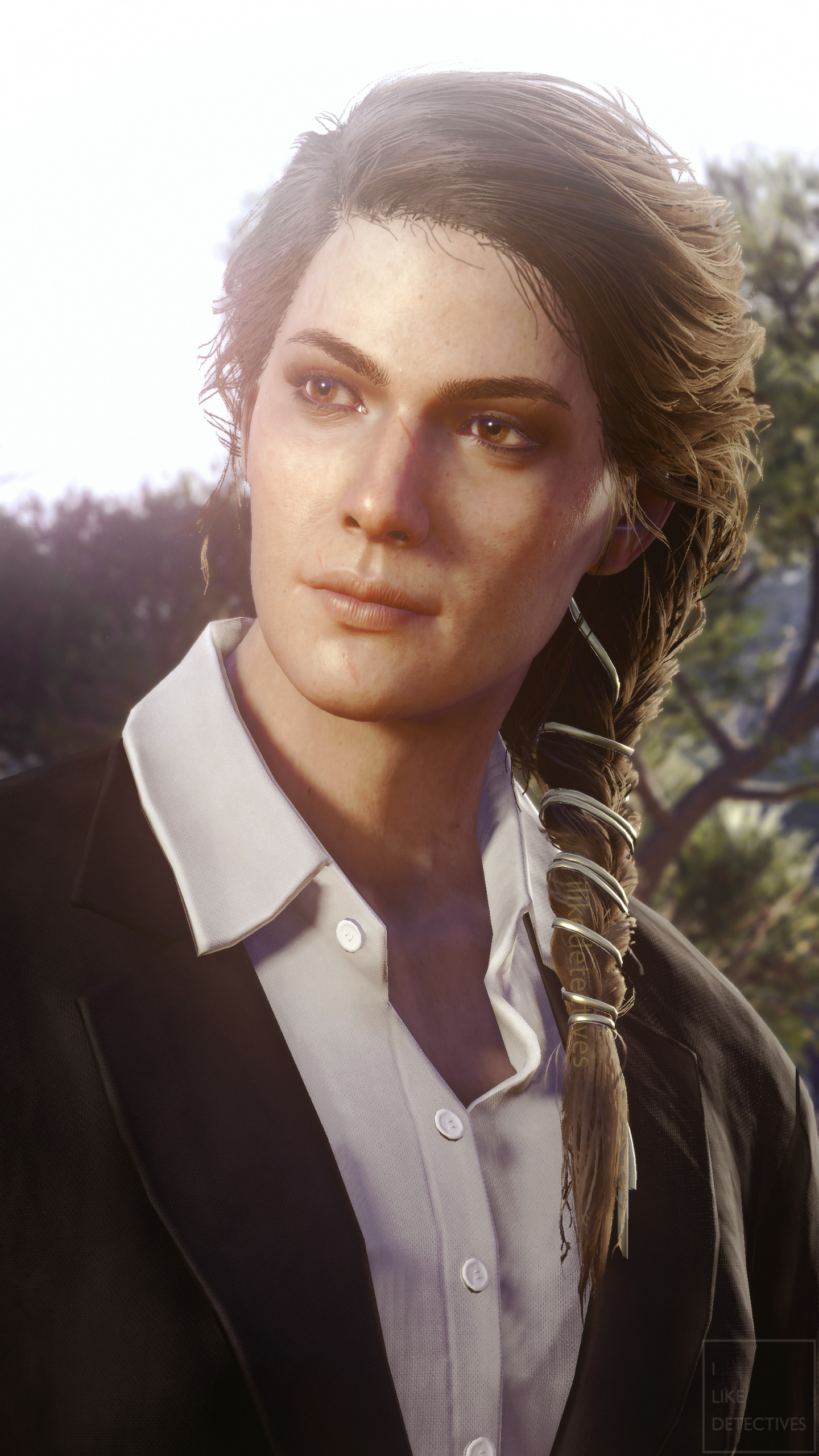 *Mods by hypermorphic (black suit), BenderBendingRodriguez3000 (golden hairband), and skylightglare (enhanced facial scars).
